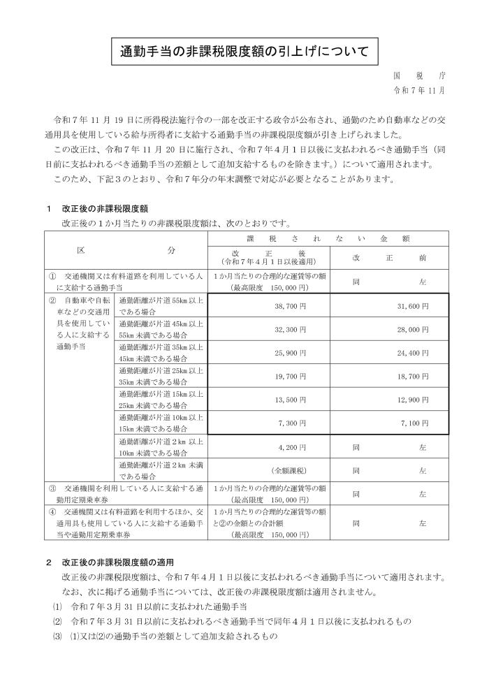 2025年4月から遡って、非課税限度額の引上げが行なわれました。