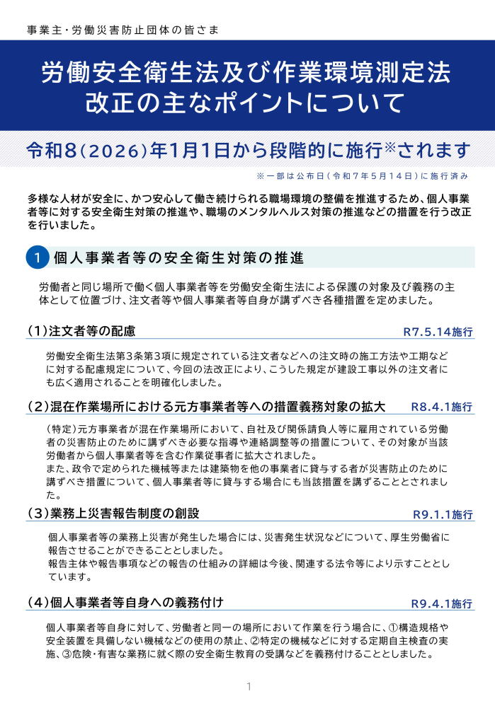 労働安全衛生法及び作業環境測定法の改正について。