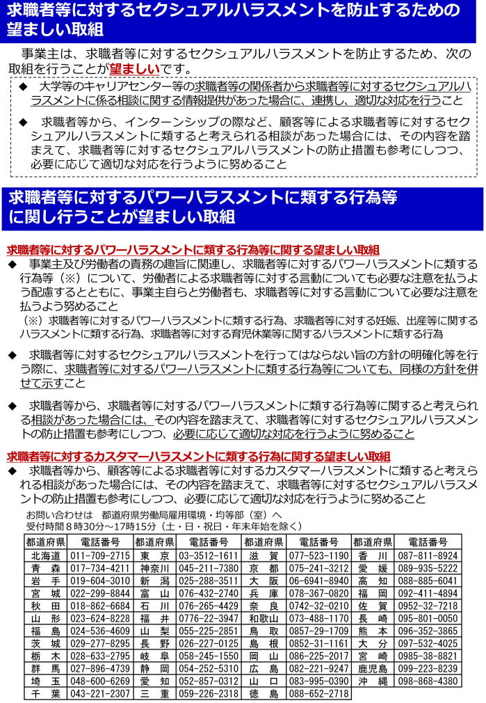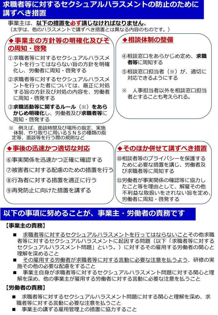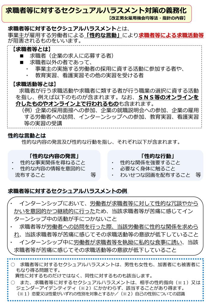 2,求職者等に対するセクシュアルハラスメント対策の義務化