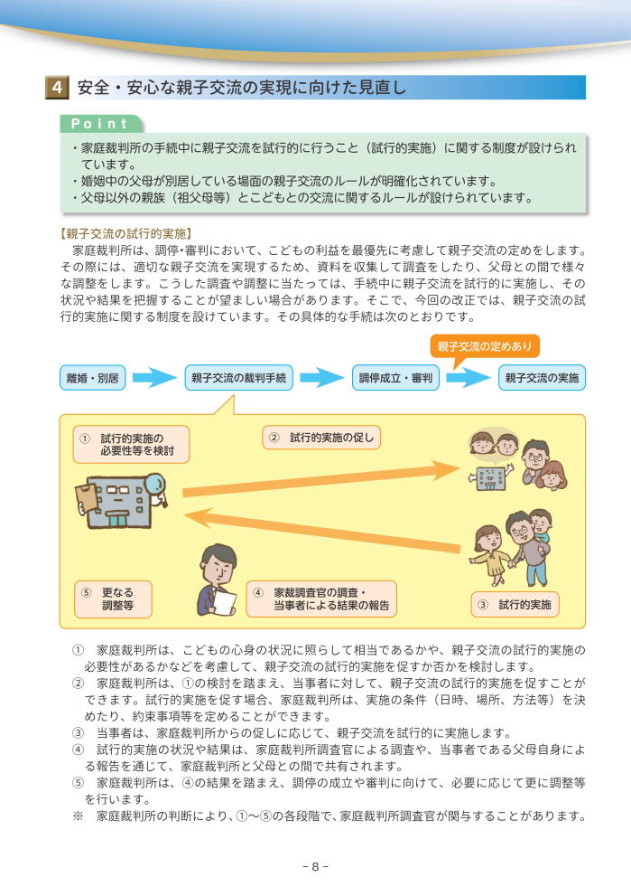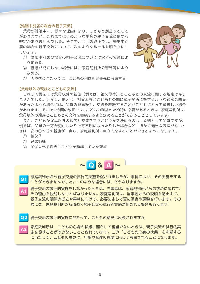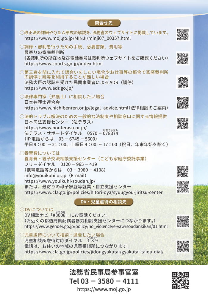 親権・監護、養育費、親子交流、養子縁組、財産分与等に関する民法等の規定を見直すものです。